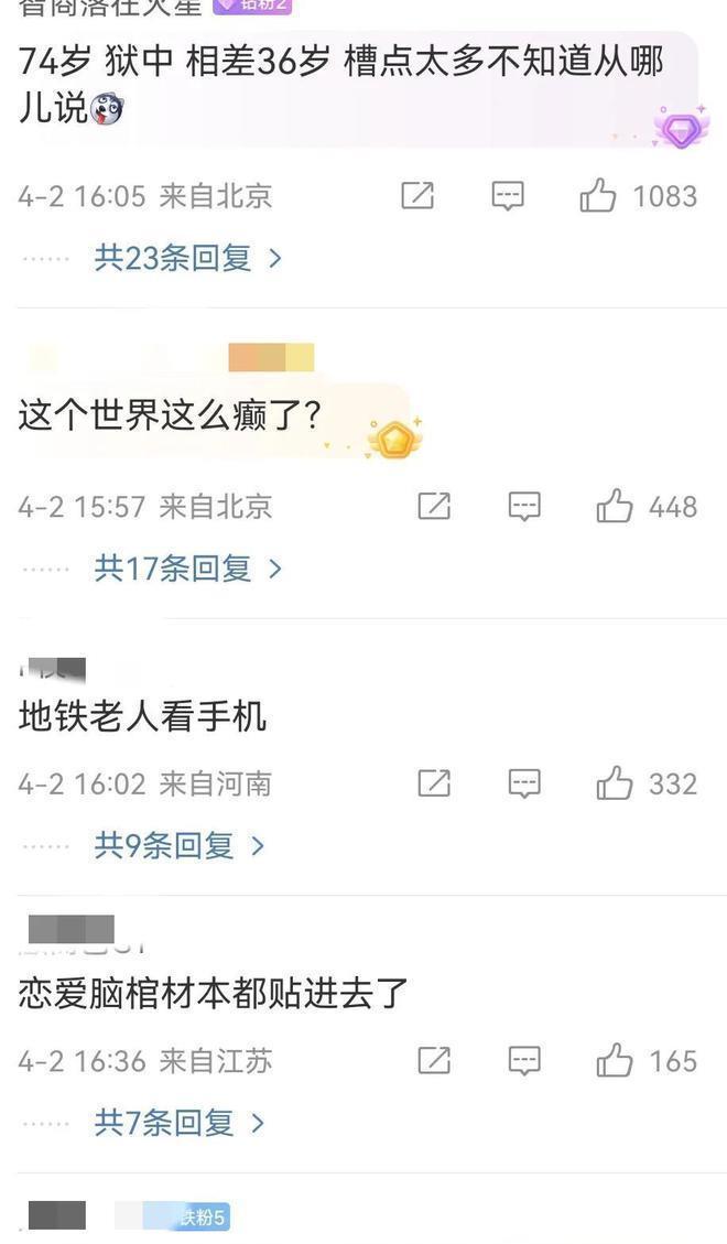 网友们之所以会感到很意外,不仅是因为他的女朋友在坐牢,还因为他的女朋友比他足足小了36岁,也就是说他的女朋友现在才38岁,这个年纪都可以当他女儿了,他却要和对方结婚。